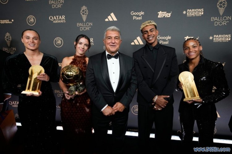 收获颇丰!巴萨官方晒拉波尔塔与金球奖自家获奖球员合照