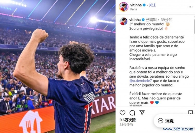 获金球奖第三名!维蒂尼亚:我是个被眷顾的人,也祝贺朋友登贝莱