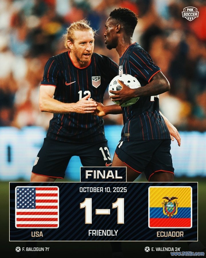 友情 赛:美国1-1厄瓜多尔 35岁瓦伦西亚破门巴洛贡攻破南美之墙