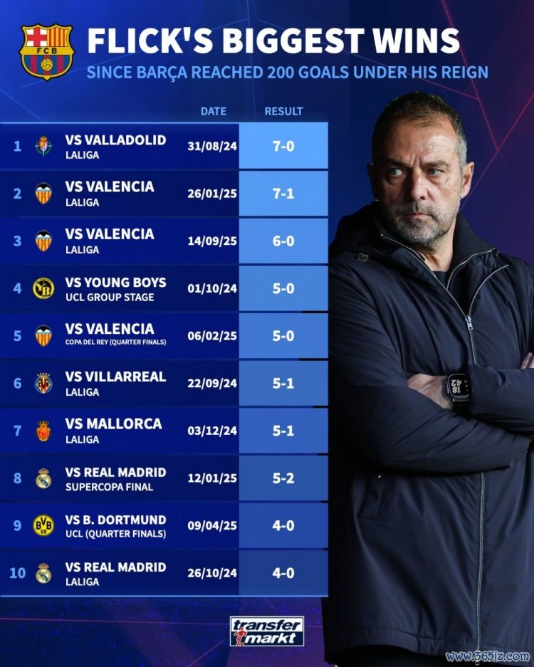 弗里克执教巴萨最大获胜 :7-0巴拉多利德居首,5-2、4-0皇马在列