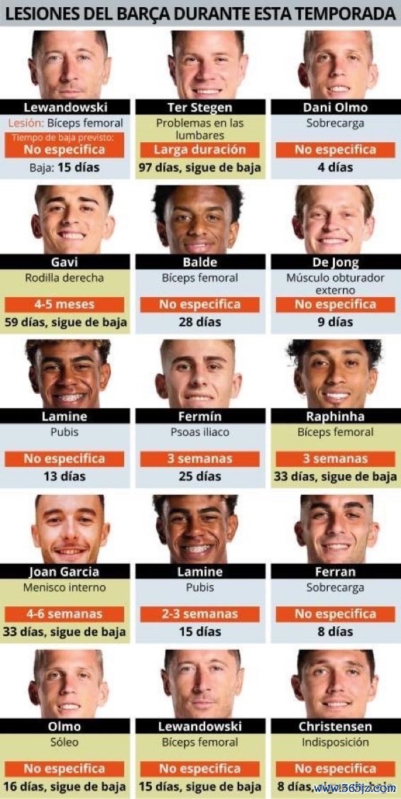 伤了一整套主力😩巴萨伤员:佩德里、莱万、拉菲、奥尔莫......