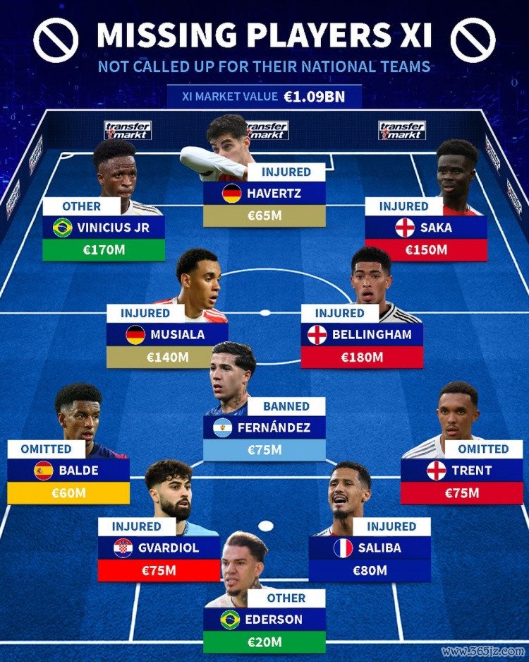 德转列缺席国家队阵形 : 维尼修斯、穆西亚拉在列, 总价10.9亿欧